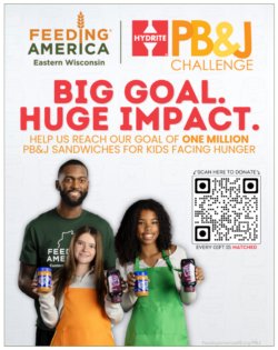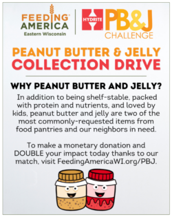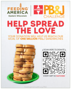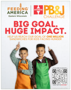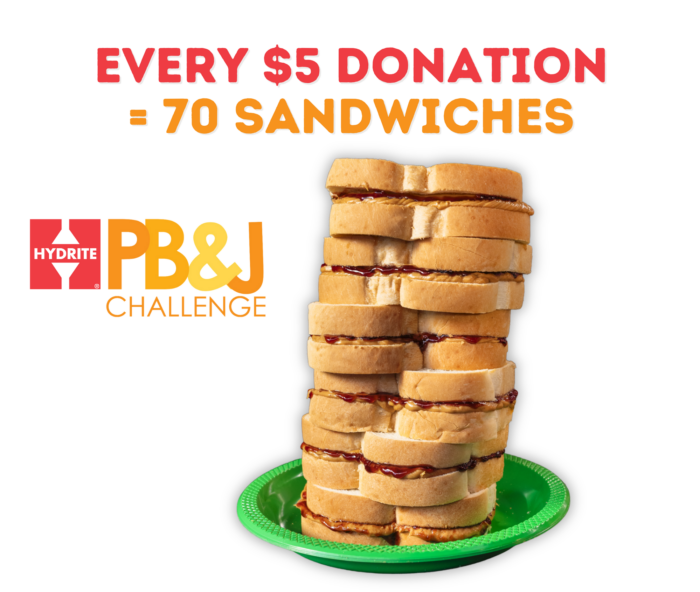 Did you know a staggering 1-in-6 children in Eastern Wisconsin do not know where their next meal is coming from? Help Feeding America Eastern Wisconsin ensure kids have the fuel they need to achieve their maximum potential in the classroom and on the playground with a donation to the PB&J Challenge, in partnership with Hydrite.