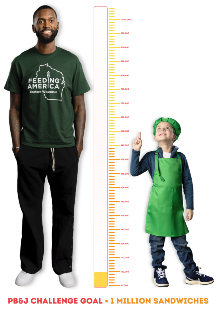 We’ve teamed up with NBA Champion, Bobby Portis Jr. to encourage others to give in whatever way they can during the PB&J Challenge. For a limited time only, thanks to a generous match from an anonymous donor, every monetary donation will be DOUBLED. That’s right, every $5 donated will provide the equivalent of 70 peanut butter and jelly sandwiches for local kids facing hunger! Help us meet our goal of 1 MILLION PB&J sandwiches this year!